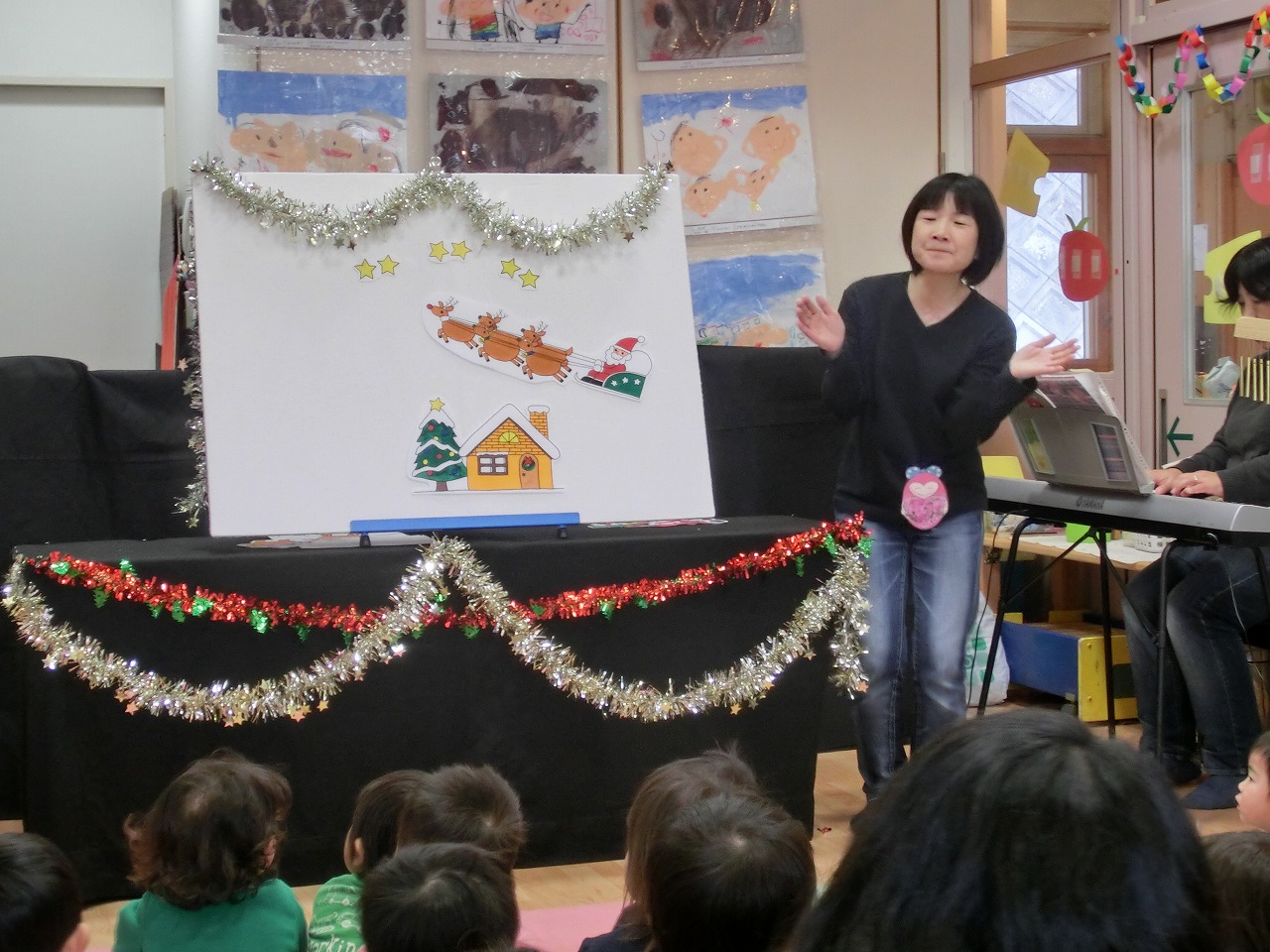 パネルシアター「サンタクロースの1,2,3」では、サンタクロースが体操する場面では一緒に体操して盛りあがりました。