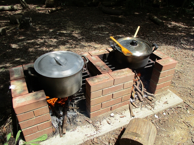 子ども達がやってくる30分前から、小枝を集め、薪を入れてお湯をわかす・・・