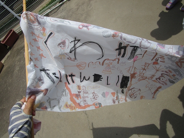 なくなったはずの勇気のシンボル、くわがた組の旗を無事にみつけて