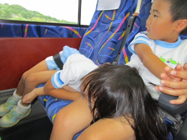 帰りのバスの中では、すぐに寝てしまった子どももいれば、