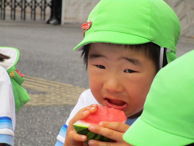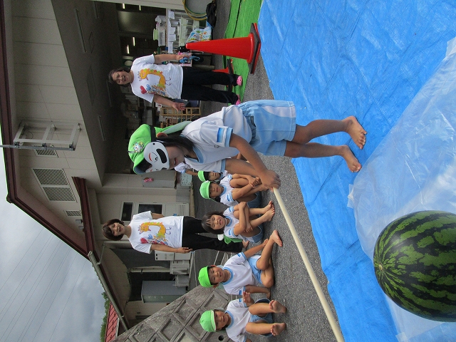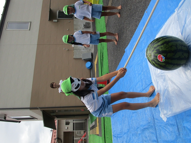 保育園に着いてすぐに、スイカ割り大会!