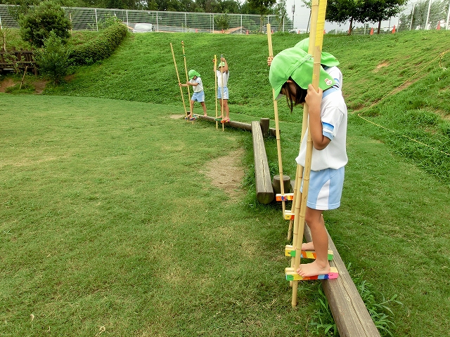 暑いけれど・・・毎年、この時期から竹馬を始める!