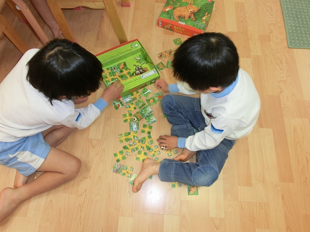 新しい保育室や先生に戸惑うことなく、普段通りに遊ぶ幼児クラスの子ども達・・・