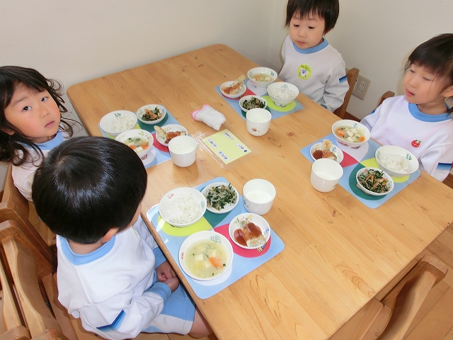 食事中の乳児さん達・・・折角ご飯を食べ始めていたのにね