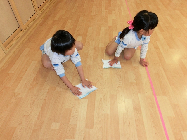 年長児クラスになった子ども達は張り切って、床掃除までしてくれたり・・・