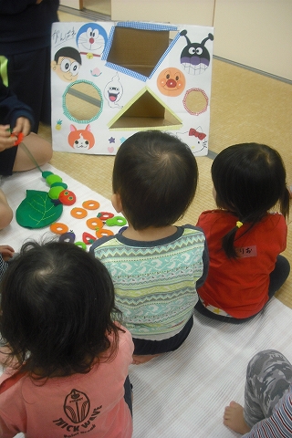 2歳児さん達が次々とやってきて、入れ物に入れた種を渡してくれました。