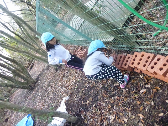 ②レンガや砂を何度も往復して運ぶ。