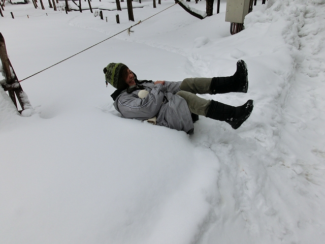 子ども達の楽しみにしていた雪遊びが現地が吹雪いていた為に、