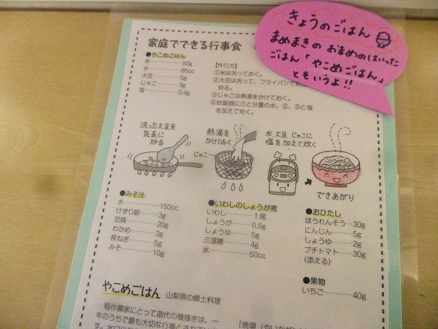 そのレシピを給食の展示ケースに張り出すと、