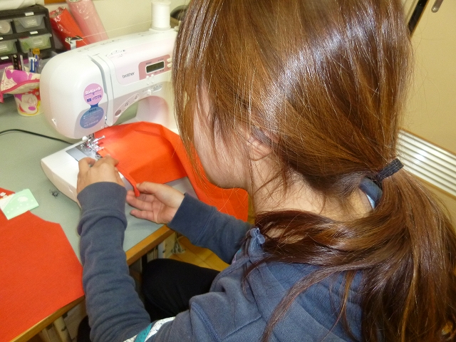 先生たちが心を込めて、子ども達の為にミシンカタカタ・・・