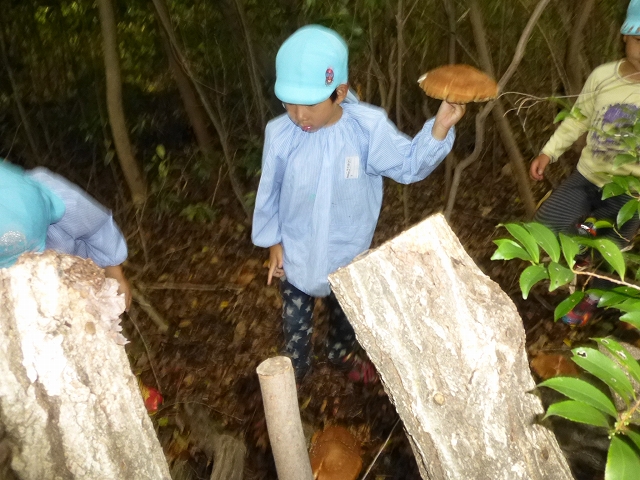 シイタケをサッサと収穫し、一斉に遊具の所に走り出した・・・