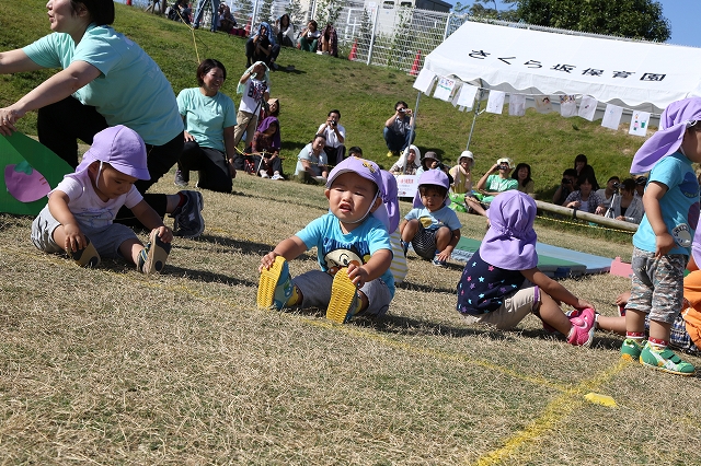 0歳児の親子レースでは、ママやパパを見て、すぐに抱っこして欲しいのに、
