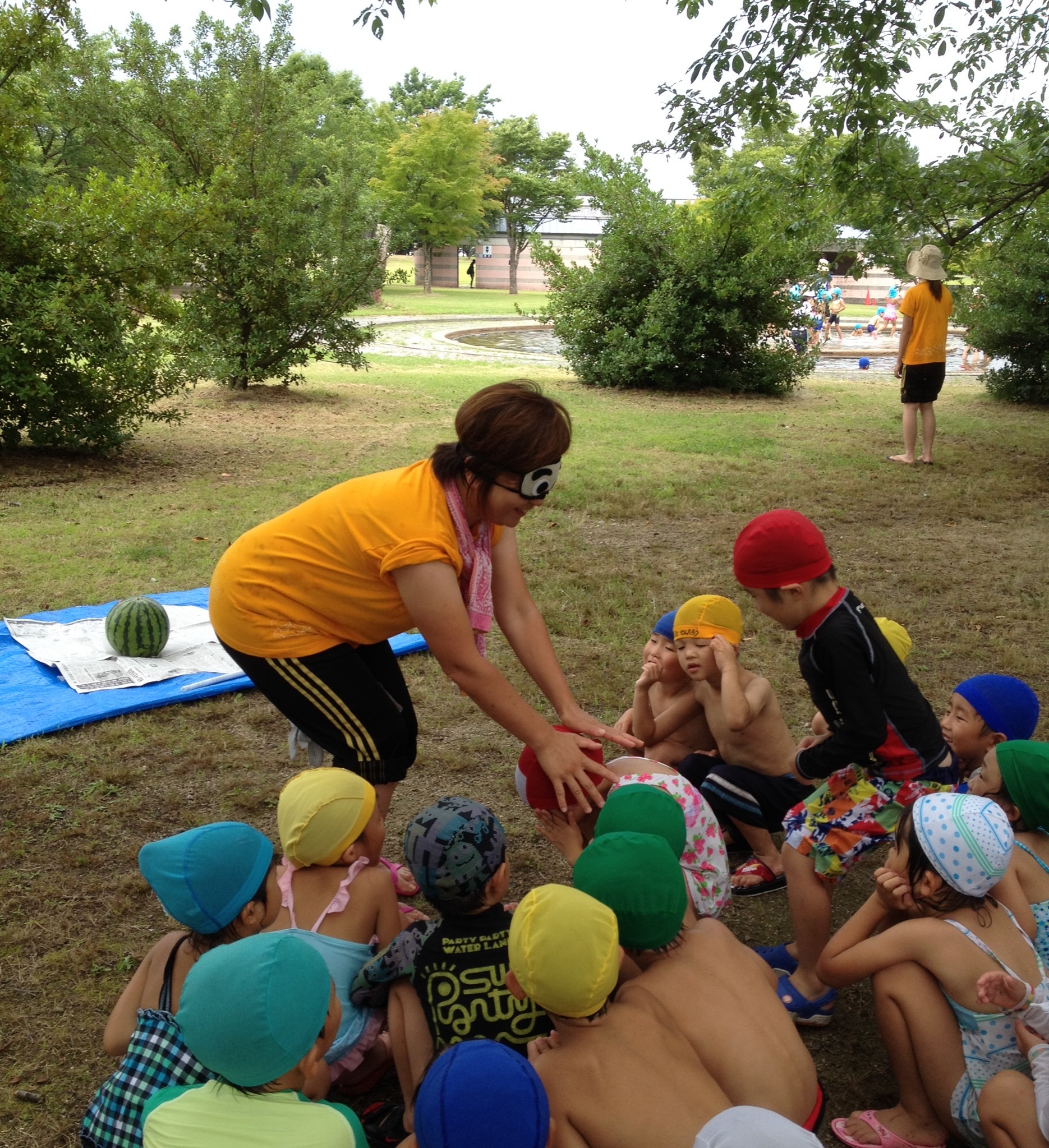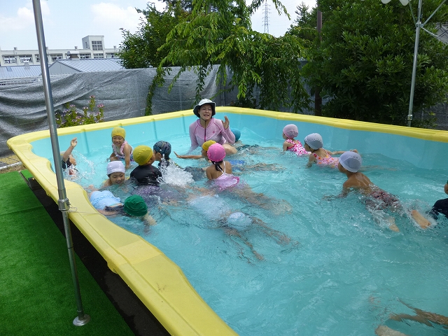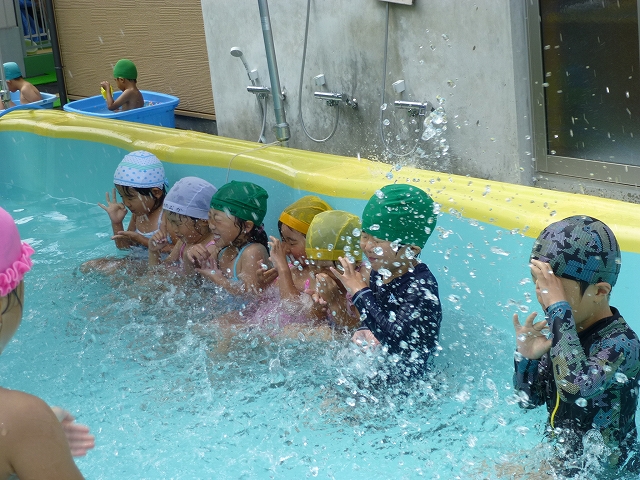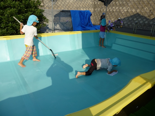 翌日の朝は、7時半出勤の保育士が再度、プール清掃と準備・・・