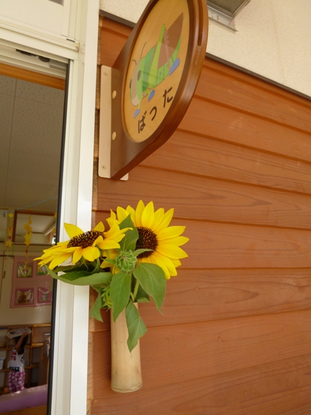 各保育室前に立派なひまわりを飾って下さったり・・・