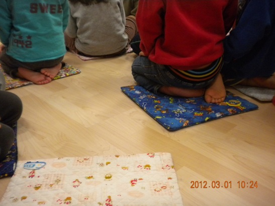 さくら坂では2歳児さんは、「ざぶとん」を保護者の方に作って頂き、