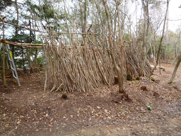 園児達が英語で遊んでいる間に、5歳児の里山造りをお手伝いして