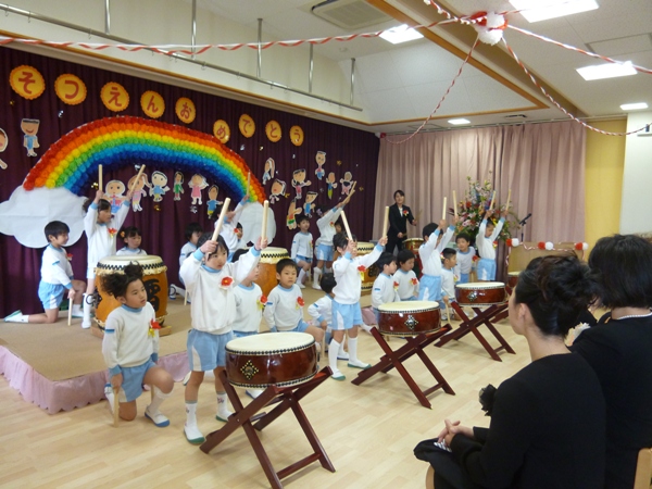 5歳児さんが和太鼓の演奏をしたり・・・