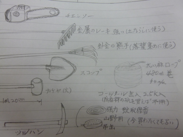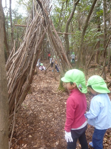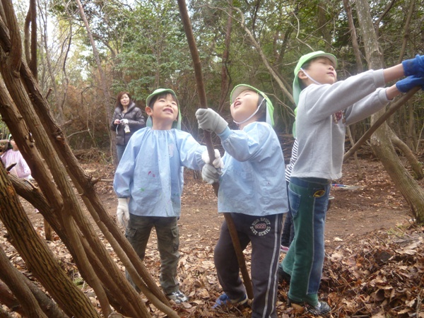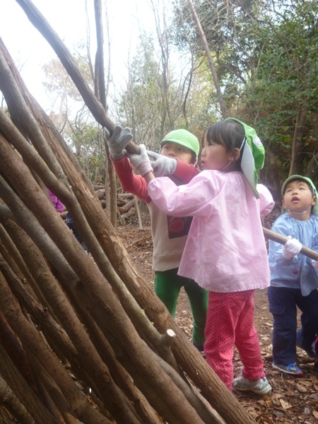 「さぁ~子ども達とトンネルの木の家を作る準備を開始!」