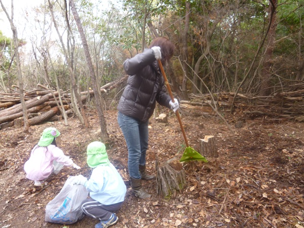 これは大正解! 数の多さと一生懸命さで落ち葉や枯れ木を集めるのが
