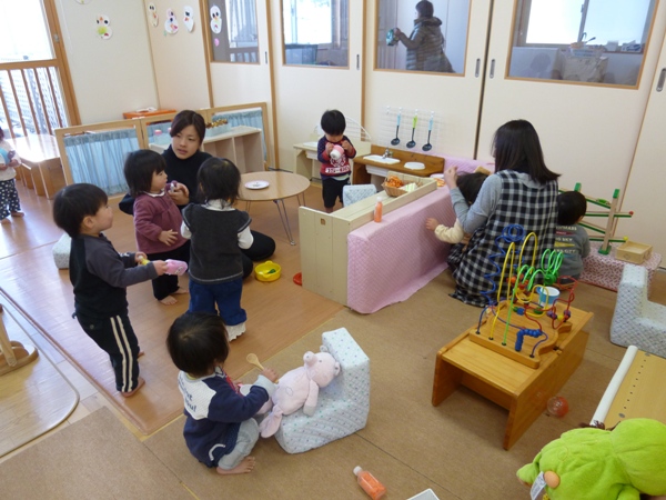 0・1歳児が一緒に仲良く遊ぶ姿もあり・・・