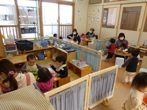0歳児は1歳児と合同保育!
