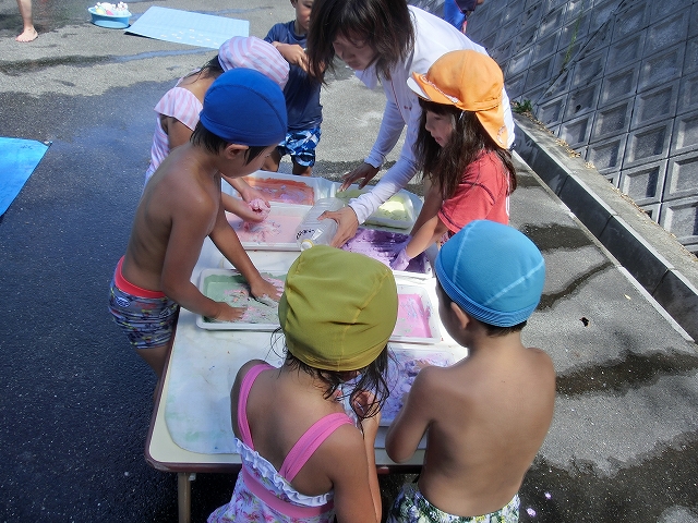 「ほいくえんをかわいくするのね。わたしもやりたい!」と集まってきた。