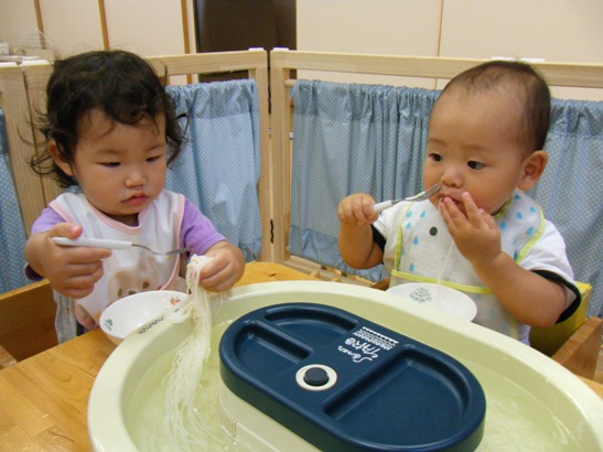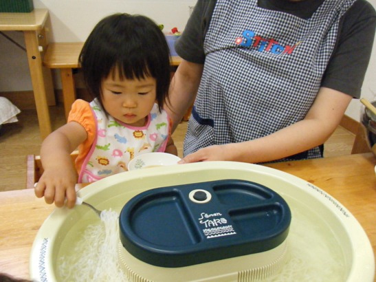 そうめんと共にフォークはくるくる~ 保育士さんは大爆笑!