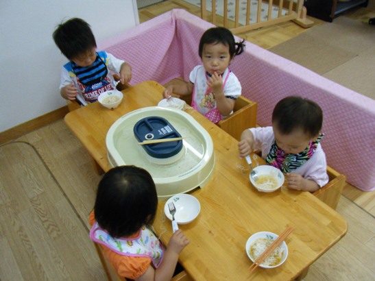園 長 : 「よく1歳児がこんなにきれいに食べたね?」