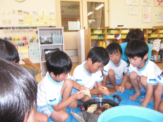 さて、さて、 5歳児達は、いつも通り登園してきたら・・・