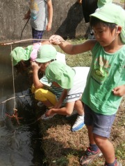 Q.子ども達が竿につけているザリガニのえさは何でしょうか?