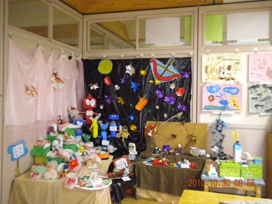 各クラスごとに部屋の片隅にコーナーを設けて展示した。