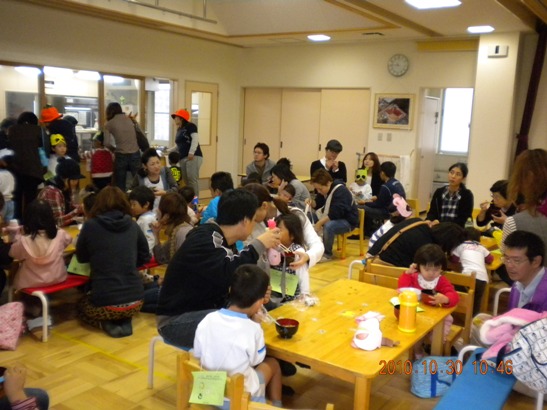 食事の時間になって食べだしたが、数名の園児が眠たくなって