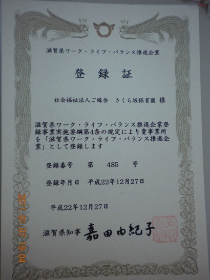 そんな私に昨年度、申請した「滋賀県 ワーク・ライフ・バランス推進企業」の