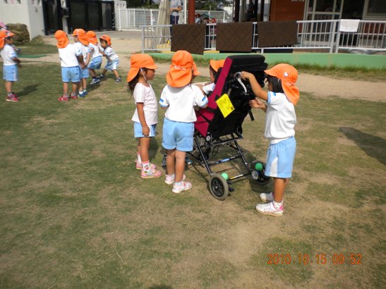 運動会の4・5歳児の縦割りゲームが終了した後に、どの保護者の方も