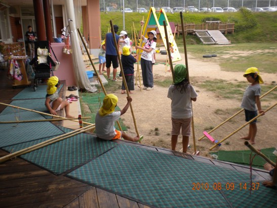 )週末にはあの長い竹馬を車に入れて持ち帰っては、
