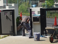 園舎前の坂道をわざわざ竹馬で登り、駐車場に向かう女の子がいた。