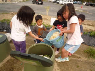 -テラス掃除- -園内のゴミを各クラスから集めるー -コンポストへ残飯を入れる-