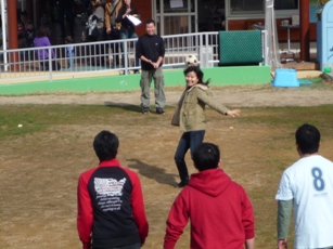 限られた場所である事とお母さん達も混ざっているので、お父さん達は力一杯投げられず・・・