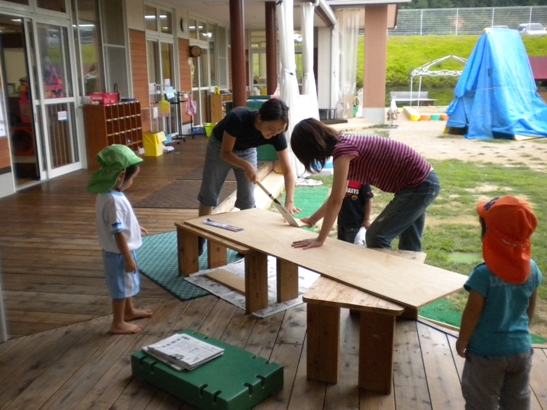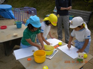 保育園の砂を使って・・・
