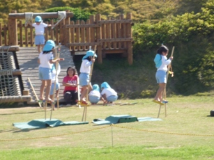 運動会の後からは女の子達が数人で竹馬をする姿をよく見かける。。。