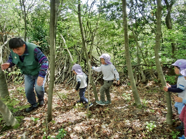 まずは、裏山の環境や子ども達の遊びの様子を見学して頂くことに・・・