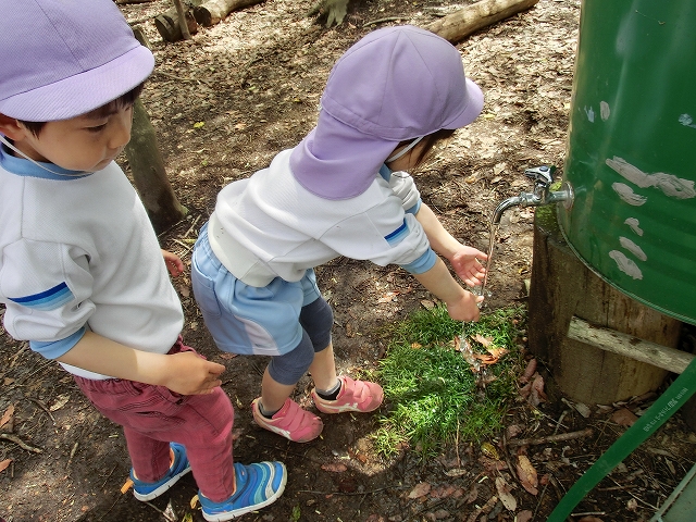 この後、水で手を洗い、おやつの時間