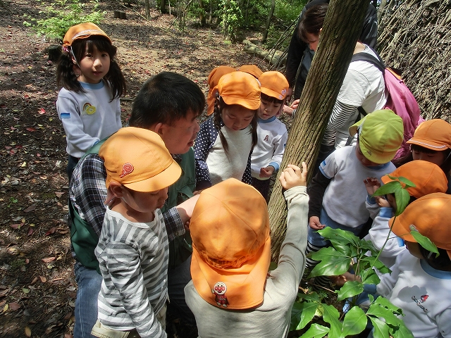 林の中を歩いて、食べられる葉と触ってはいけない葉などを探しました。